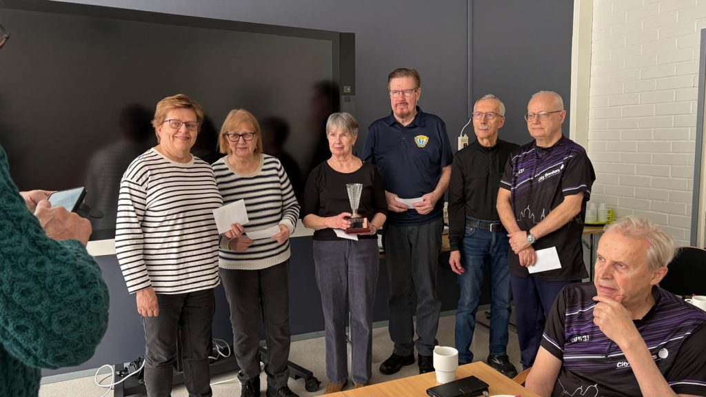 Parhaimmisto vasemmalta: Leena Jokiniemi (1237), Pirkko Halden (1297), Mai-Lis Ahlfors (1316), William Braithwaite (1281), Veli Timonen (1166) ja Kai Backman (1227)